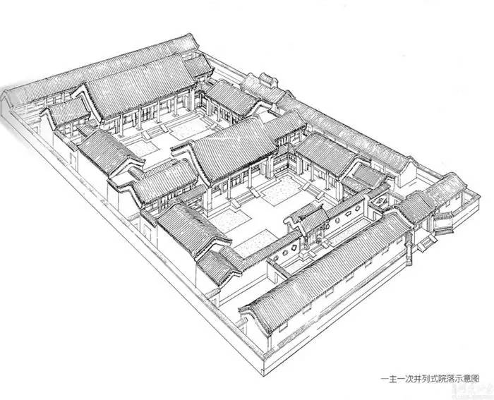 一主一次并列四合院