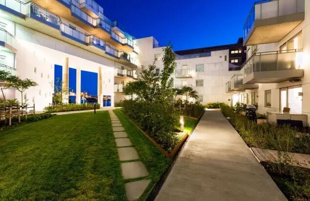 奧斯陸Sørenga地區(qū)6街區(qū)有110個單元和一個半公共綠化庭院。兩個大型對角線走向的通道將街區(qū)切割開,并將濱水景觀引入到庭院與Sørenga中央公園。
